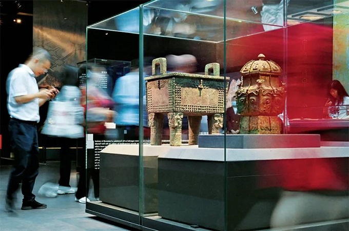 中國考古博物館是中國歷史研究院下設的國家級專業(yè)考古博物館,以考古出土文物和珍貴古籍文獻為依托,致力于展示與傳播中華優(yōu)秀傳統(tǒng)文化。圖為2023年9月15日,觀眾在館內(nèi)參觀珍貴文物展品。 新華社記者 李賀/攝