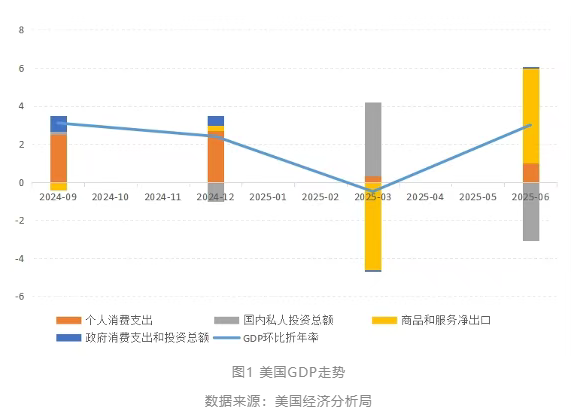 2025年第二季度,美國(guó)實(shí)際GDP環(huán)比折年率初值錄得3%的增長(zhǎng),大幅超越前值-0.5%和市場(chǎng)預(yù)期的2.4%。自特朗普政府在全球范圍內(nèi)推行“對(duì)等關(guān)稅”政策以來,市場(chǎng)對(duì)美國(guó)經(jīng)濟(jì)下行乃至衰退的擔(dān)憂持續(xù)發(fā)酵,對(duì)美國(guó)經(jīng)濟(jì)走勢(shì)的判斷也隨著新數(shù)據(jù)的發(fā)布而不斷調(diào)整。筆者嘗試從三個(gè)維度解讀美國(guó)經(jīng)濟(jì)的“表與里”。